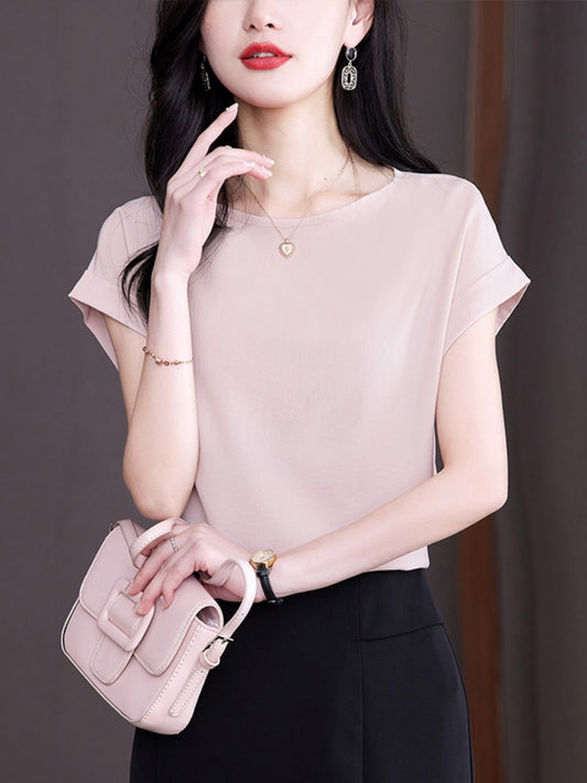Silk Blouse for Women Short sleeve Womens Tops Loose Casual Blouse Cotton Summer Women's Clothing Solid OL Elegant Women Blouse